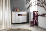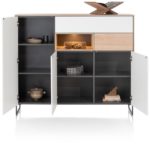 Is het geen plaatje, deze strak vormgegeven dressette uit de LINDFIELD serie van XOOON? Een stijlvol alternatief voor wie geen ruimte heeft voor een traditionele bergkast. LINDFIELD is geliefd vanwege zijn minimalistische design. Deze dressette van Laminato (melamine) heeft witte fronten en is prachtig afgewerkt met eikenlook elementen. Het meubel is 160 cm breed en voorzien van 3 deuren, 2 laden en 1 niche met ledverlichting; ideaal om je mooiste decoratie item in de spotlight te zetten! LINDFIELD staat op een slanke poot.