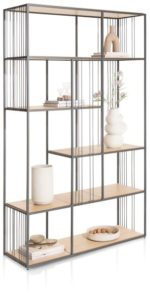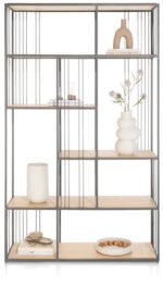 Ben je op zoek naar een roomdivider die gezien mag worden? Laat je dan verrassen door deze metalen roomdivider NIORA. NIORA is het perfecte meubelstuk om jouw mooiste accessoires een plek te geven én twee ruimtes van elkaar te scheiden. De roomdivider is verkrijgbaar in 2 formaten en 2 kleuren: silk grey en grafiet. Hij is opgebouwd uit een gelakt metalen frame dat aan alle zijden geopend is. De verticale, metalen spijlen geven NIORA een speelse look. De planken zijn uitgevoerd in licht eikenfineer. TIP: je kunt roomdivider NIORA ook als wandkast gebruiken. Door het open karakter blijft de kleur van je wand goed zichtbaar. Zo kun je zelf je eigen accent leggen.