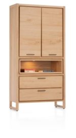 Berg je spullen op in stijl in deze NYSTEAD bergkast! Dit prachtige meubel combineert een moderne look met een landelijke sfeer. Met 2 deuren, 2 lades en 1 niche biedt deze kast volop opbergruimte. Het soft-closing systeem en ingebouwde ledverlichting in de niche zorgen voor een luxe afwerking. NYSTEAD is uitgevoerd in hoogwaardig eikenfineer in de warme kleur dune natural, waardoor je interieur een gezellige, landelijke uitstraling krijgt. De platinumlak geeft de bergkast een matte, stijlvolle afwerking én zorgt voor extra duurzaamheid. Voor een serene look combineer je deze bergkast met de tafels uit de NYBORG collectie.