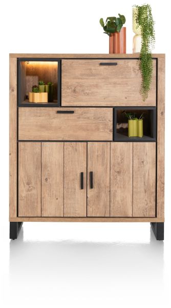 Pavie, highboard 125 cm. - 1-deur + 2-laden + 1-klep + 3-niches (+ LED)