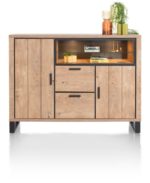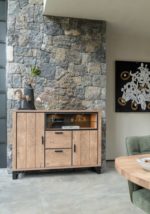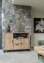 Op zoek naar een leuk meubelstuk dat zich ergens tussen een highboard en dressoir bevindt? Dan is deze dressette misschien wel het ideale meubel voor jou! Met een grote en een kleine kastdeur, twee lades en een handig groot open vak met glazen plank middenin, heeft dit meubel veel mogelijkheden. Deze dressette heeft een look in de landelijke kleur Barnwood en is gemaakt van HPL Primo Laminato met zwarte, metalen accenten. Het meubel is 160cm breed en 120cm hoog en zit qua formaat tussen een dressoir en een highboard.