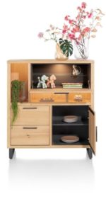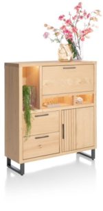 Pavie, highboard 125 cm. – 1-deur + 2-laden + 1-klep + 3-niches (+ LED)