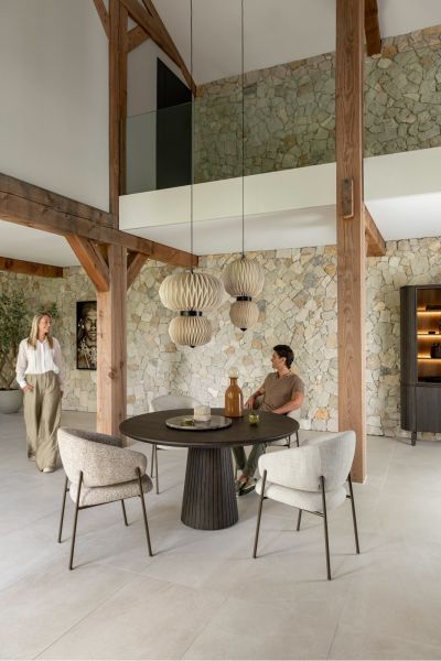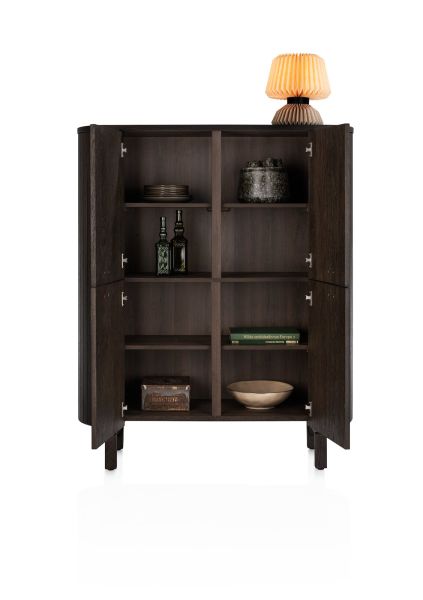 Het Ravello highboard combineert modern design met warme details en is een stijlvolle opberger voor je woonkamer of eetruimte. De afgeronde vormen en verticale latjes geven het meubel een verfijnde en eigentijdse uitstraling. De kast is gemaakt van eikenfineer in een diepe basaltkleur en afgewerkt met een matte platinumlak die extra bescherming biedt. De vier deuren zijn voorzien van een luxe soft close systeem wat zorgt voor gebruiksgemak. Dit highboard is onderdeel van de complete Ravello-collectie en perfect te combineren met andere meubels uit dezelfde lijn.