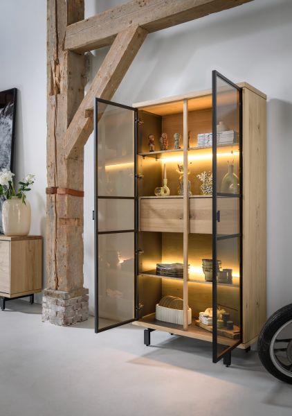 Henders & Hazel Ridgefield, vitrine 100 cm - 2-glasdeuren + 2-laden (+ LED)