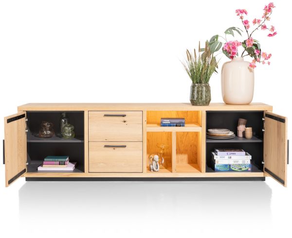 Pavie, dressoir 233 cm. – 2-deuren + 2-laden + 3-niches (+ LED)