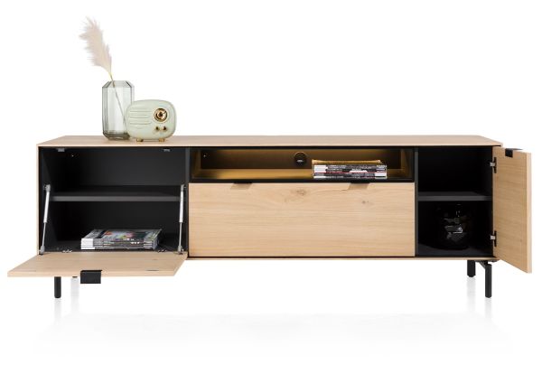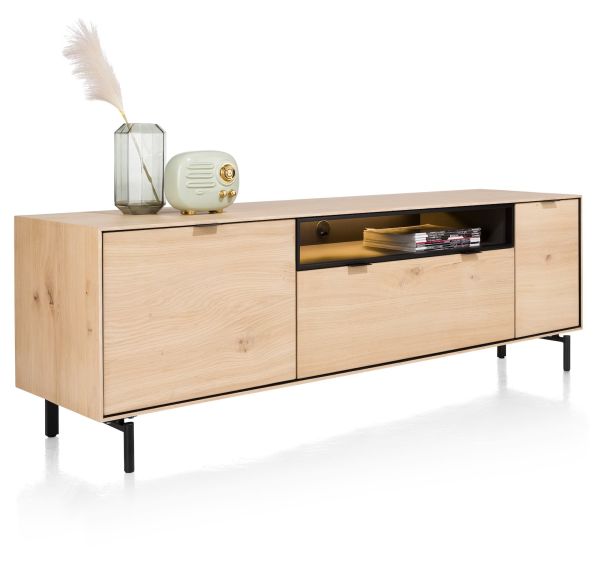 XOOON Elements, lowboard 180 cm. - hang + 1-deur + 1-lade + klep + 1-niche + led incl. metalen poten