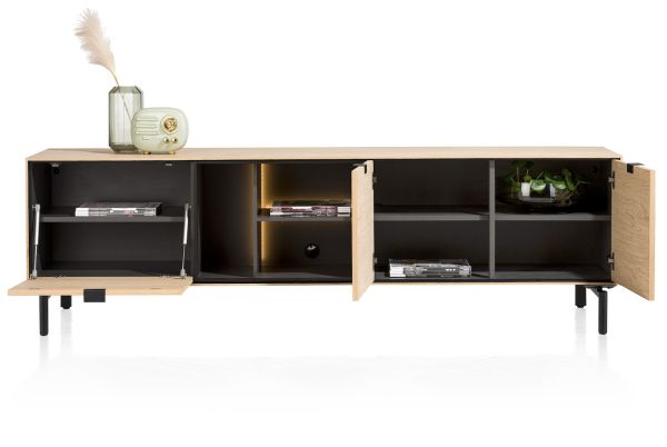 XOOON Elements, lowboard 210 cm. - hang + 2-deuren + klep + 3-niches + led incl. metalen poten