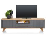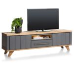 Dit modern landelijke lowboard uit de Jardin collectie van Henders & Hazel is maar liefst 210 cm breed. Een lekker royaal tv-meubel dus. Het lowboard heeft 1 lade, 1 niche en 2 kleppen, handig voor het opbergen van multimedia apparatuur. Praktisch en sfeervol is de geïntegreerde ledverlichting. Het meubel is gemaakt van eikenfineer in de warme kleur Railway Brown, de zijkanten en de fronten zijn van MDF in de kleur antraciet. Het strakke lijnenspel en de kleurencombinatie geven dit lowboard een eigentijdse landelijke uitstraling.