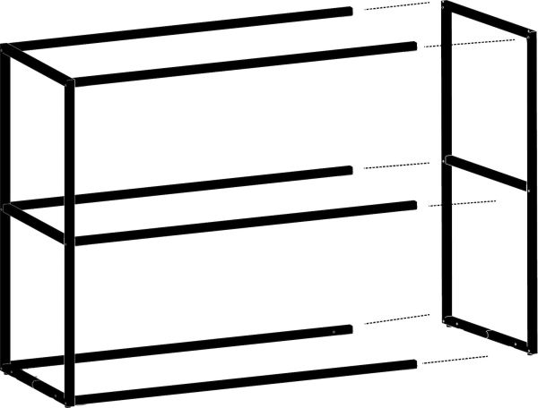 Modulo, basisrek 45 cm – 2 nivo’s hoog – 2 staanders