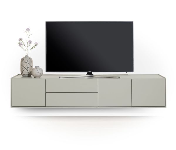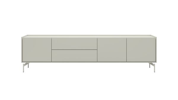 Noon, lowboard 210 cm – 3-deuren + 2-laden – geheel silk grey