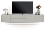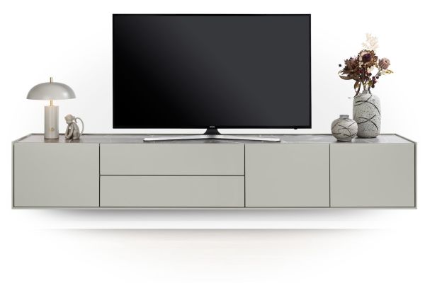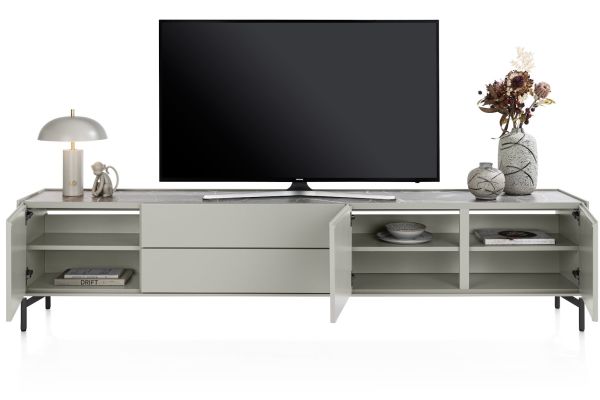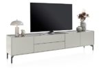 Noon, lowboard 240 cm – 3-deuren + 2-laden – bovenblad in HPL light grey