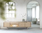 VALGARD is een strak vormgegeven lowboard met een natuurlijke look. Het is gemaakt van naturelkleur eikenfineer en staat op een onderstel in naturelkleur hout. Lowboard VALGARD heeft een afmeting van 190 cm en beschikt over 3-deuren en 1-lade met soft close systeem + 1-niche dat met led is verlicht. Het lowboard is greeploos, wat hem die strakke, minimalistische look geeft. Vergeet vooral niet te kijken naar de andere prachtige kasten uit deze serie. VALGARD is geweldig te combineren met bijpassende tafelcollecties: COSENZA en PALMA.