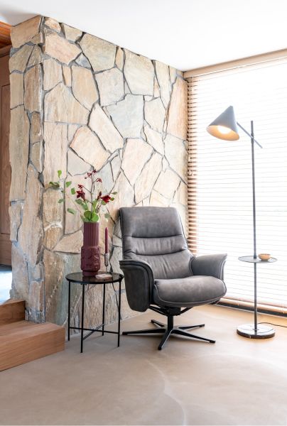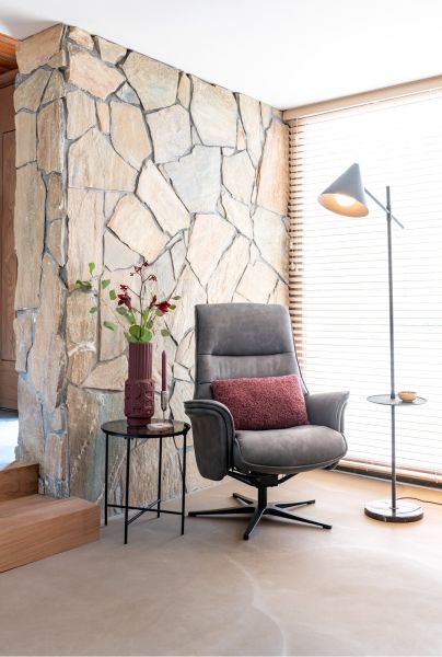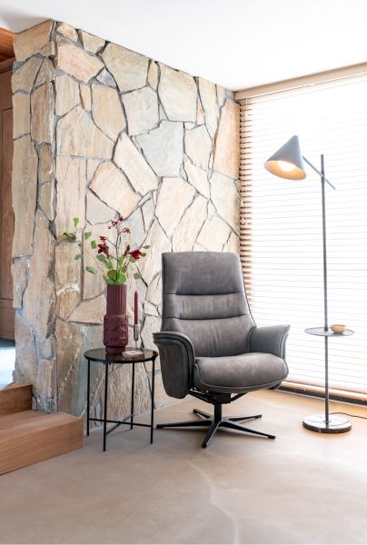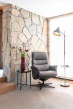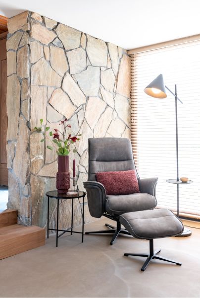 Deze manuele relaxfauteuil Lotis met bijhorende poef heeft een fijne sterpoot, twee comfortabele armleuningen en twee mooie horizontale sierstiksels in de rug. Ook het manuele kantelsysteem van deze relaxfauteuil is best ingenieus, omdat het systeem een meebewegende rugleuning heeft met extra ondersteuning bovenaan. Op vlak van design is deze fauteuil dus al zeker geslaagd, maar ook op vlak van comfort is deze Lotis een hoogvlieger, want de poef krijg je er standaard bij! Deze fauteuil is uitgevoerd in microvezelstof Pala en is verkrijgbaar in twee kleuren: lichtgrijs of antraciet. Hier zien we de uitvoering in antraciet!