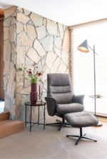 Lotis, relaxfauteuil met poef – stof Pala