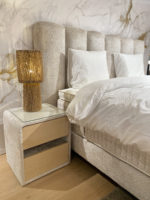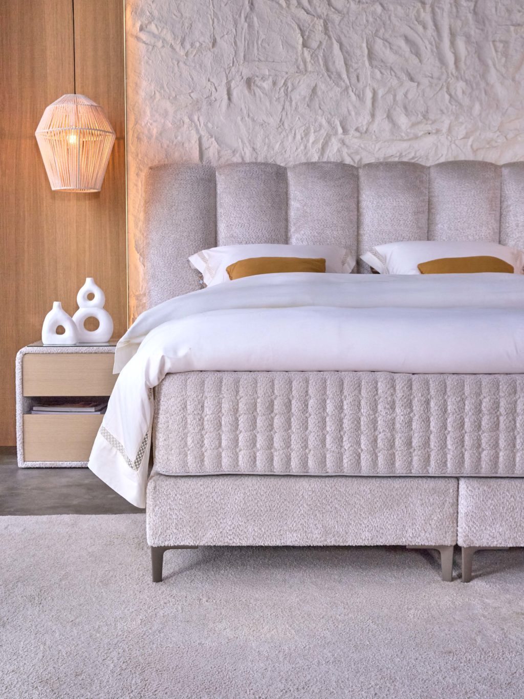 Ontdek de boxspring Ibiza, een bed dat luxe, kwaliteit en de eigentijdse Ibiza-stijl moeiteloos samenbrengt. Dit model is ontworpen voor wie houdt van modern design met een luxe twist en subliem slaapcomfort. Het kenmerkende hoofdbord met verticale lijnen en een zachte, ronde afwerking geeft de Ibiza een elegante en verfijnde uitstraling, die elke slaapkamer een stijlvolle sfeer geeft.