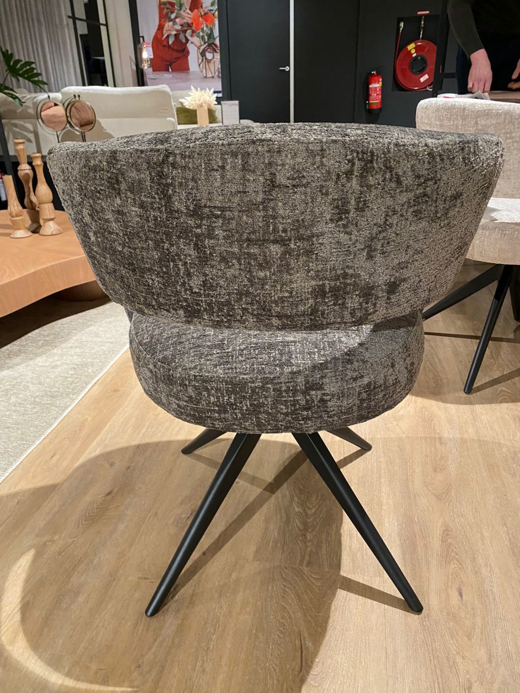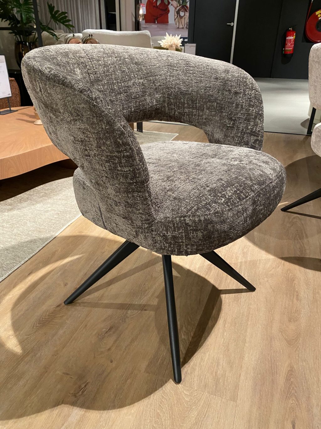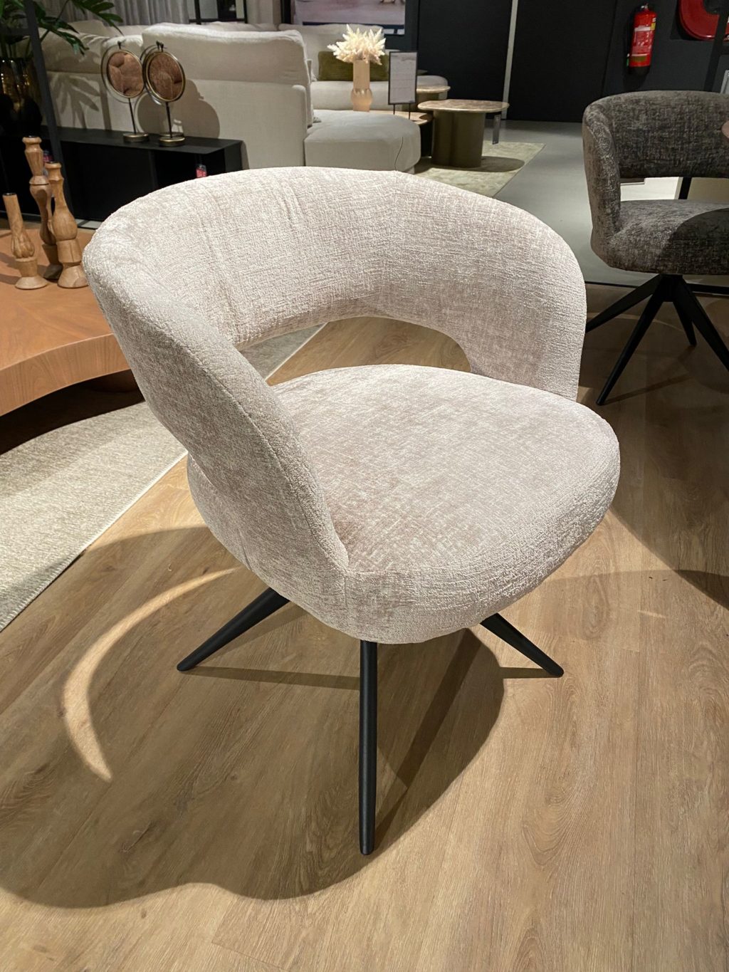 2x uitgevoerd in stof Onyx 8 stone, zwart metalen poot en terugdraaimechanisme