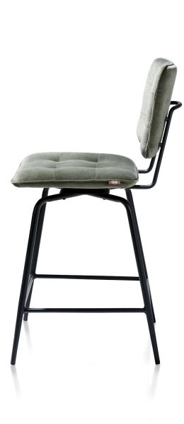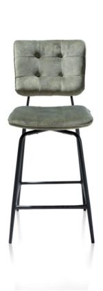 Deze moderne barstoel Manou is 102 cm hoog en heeft een trendy design. De barstoel is makkelijk te combineren met verschillende woonstijlen. Opvallend zijn de gecapitonneerde rugleuning en zitting. Het onderstel is van metaal in de kleur off black. Voor de bekleding van de rugleuning en zitting is gekozen voor de stof Karese. Dit is een sterke microvezelstof die heerlijk zacht aanvoelt, maar tegelijk super sterk is. Deze versie van de barstoel is uitgevoerd in de kleur olijf.