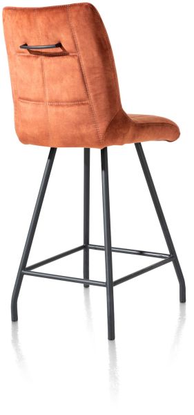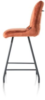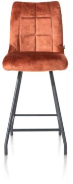Deze variant van barstoel Mischa heeft een warme luxe-uitstraling. De barstoel heeft een comfortabele kuip, bekleed met de stof Karese in de kleur koper. Deze onderhoudsvriendelijke, velvetachtige stof voelt heerlijk zacht. De barstoel staat op vier zwart metalen stoelpoten. Heel fijn is de handgreep op de rugleuning, waarmee de stoel eenvoudig te verplaatsen is. De barstoel is in verschillende kleuren en uitvoerigen leverbaar.