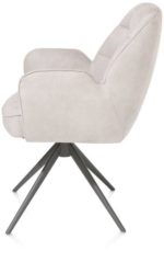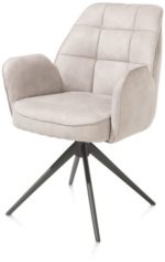 Deze armstoel Bell heeft een uniek design met ruitvormige inpullingen in de rug en een speciaal zitcomfort met pocketvering. Het fijne frame heeft een grafietkleur en is bovendien draaibaar. Deze stoelen zijn bekleed in de fijne microvezelstof Calabria. Er is echter ook een versie die in een combinatie van stof Calabria en stof Vada is uitgevoerd! De stoel is verkrijgbaar in 3 verschillende kleuren – kiezel, mosgroen en olijfkleurig. Dit is de uitvoering in kiezel. Ben je eerder fan van een gewone eetkamerstoel? Die vind je ook in deze collectie!