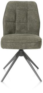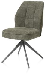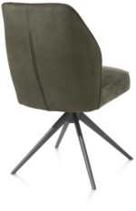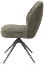 Deze eetkamerstoel Bell heeft een uniek design met ruitvormige inpullingen in de rug en een speciaal zitcomfort met pocketvering. Het fijne frame heeft een grafietkleur en is bovendien draaibaar. De achterkant van deze stoelenserie is bekleed in de microvezelstof Calabria, de voorkant in stof Vada. Er is echter ook een versie die enkel in stof Calabria is uitgevoerd. De stoel is verkrijgbaar in 3 verschillende kleuren – kiezel, mosgroen en olijfkleurig. Dit is de uitvoering in mosgroen. Ben je eerder fan van een armstoel? Die vind je ook in deze collectie!