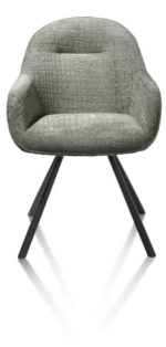 Een leuke armstoel in chenillegaren met een zichtbaar ruitpatroon, dat is deze stoel Clint mooi samengevat! De stoel is verkrijgbaar in 4 kleuren en 2 versies. Deze heeft een uitvoering in het olijfgroen en is draaibaar, maar er is ook een niet-draaibare versie van deze stoel verkrijgbaar met vaste poten. Het onderstel van deze stoel ziet er in beide versies echter bijna hetzelfde uit, dus combineren is zeker mogelijk! De zitting van de stoel is 50cm hoog en de armleuning is 64cm hoog. Handig om te weten!