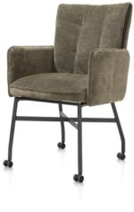 Henders & Hazel Eden, armstoel - metalen frame wielen - pocket - greep Livigno d.groen + accent in Calabria mosgroen