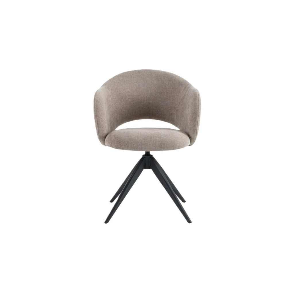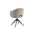 De zwart metalen poot is modern vormgegeven en draait door middel van een centrale conus. Door deze draaipoot kan de armstoel ronddraaien en zal terugkeren naar zijn oorspronkelijke positie. Heel handig want zo kun je “uitstappen” en de stoel draait weer terug en staat netjes aan de tafel.