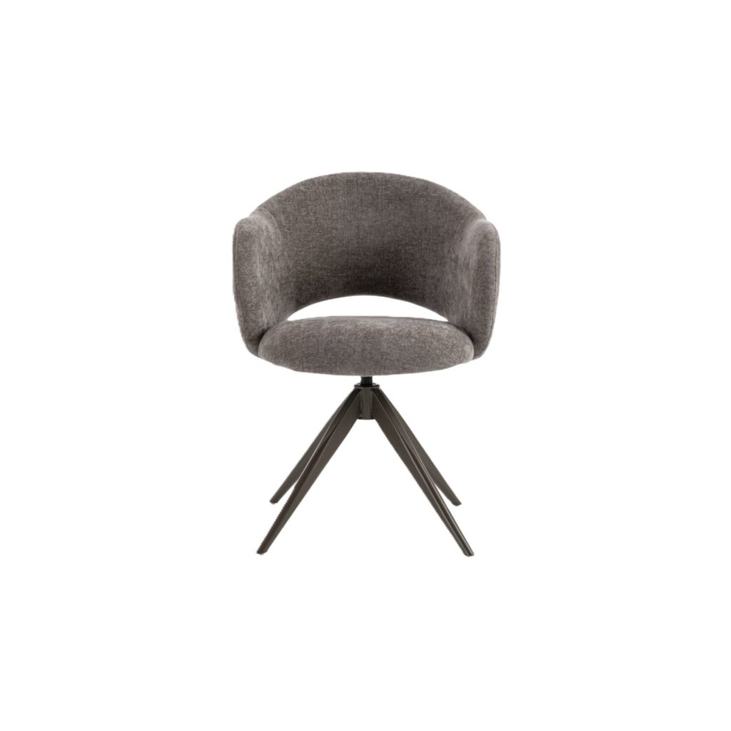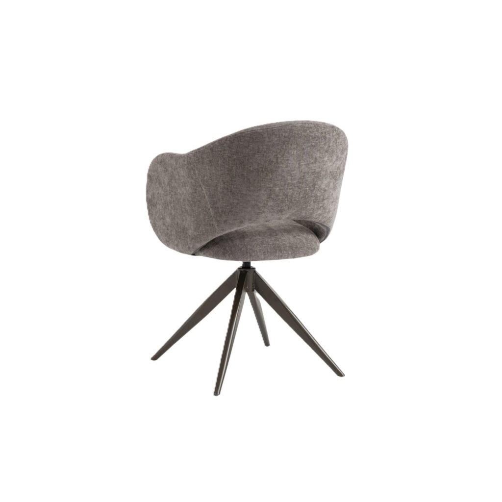 De zwart metalen poot is modern vormgegeven en draait door middel van een centrale conus. Door deze draaipoot kan de armstoel ronddraaien en zal terugkeren naar zijn oorspronkelijke positie. Heel handig want zo kun je “uitstappen” en de stoel draait weer terug en staat netjes aan de tafel.