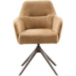 De comfortabele eetkamerstoel Bowina is uitgevoerd in een sterke en zachte okergele bouclé stof en met een draaibaar onderstel inclusief terugdraaimechanisme. Hierdoor zal de stoel altijd weer naar zijn oorspronkelijke positie terugdraaien. Bowina beschikt over een comfortabel zitcomfort en is dan ook erg geschikt voor een heerlijk avondje tafelen met vrienden of familie.
