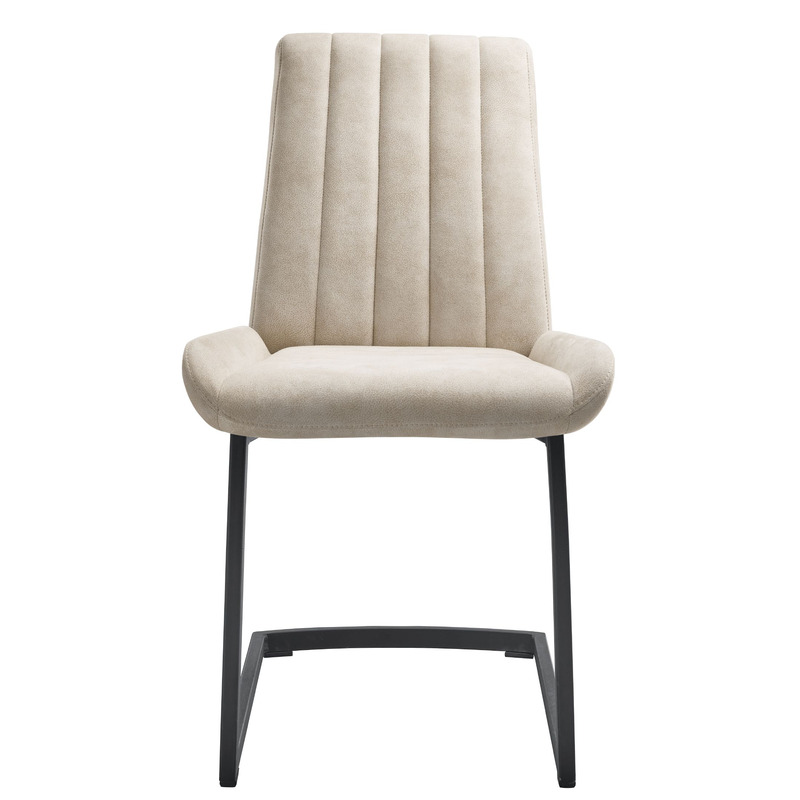 Bij de poten kun je kiezen uit een eetstoel met sledepoot, een armstoel met 4 rechte poten met parketwieltjes, en een eetstoel met 4 schuine poten, allemaal in zwart metaal. De rugstiksels zijn leverbaar in horizontale sierstiksels, verticale sierstiksels en vierkante sierstiksels. Met deze stiksels krijgt iedere stoel weer een andere uitstraling.