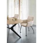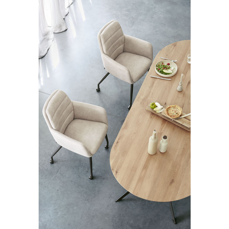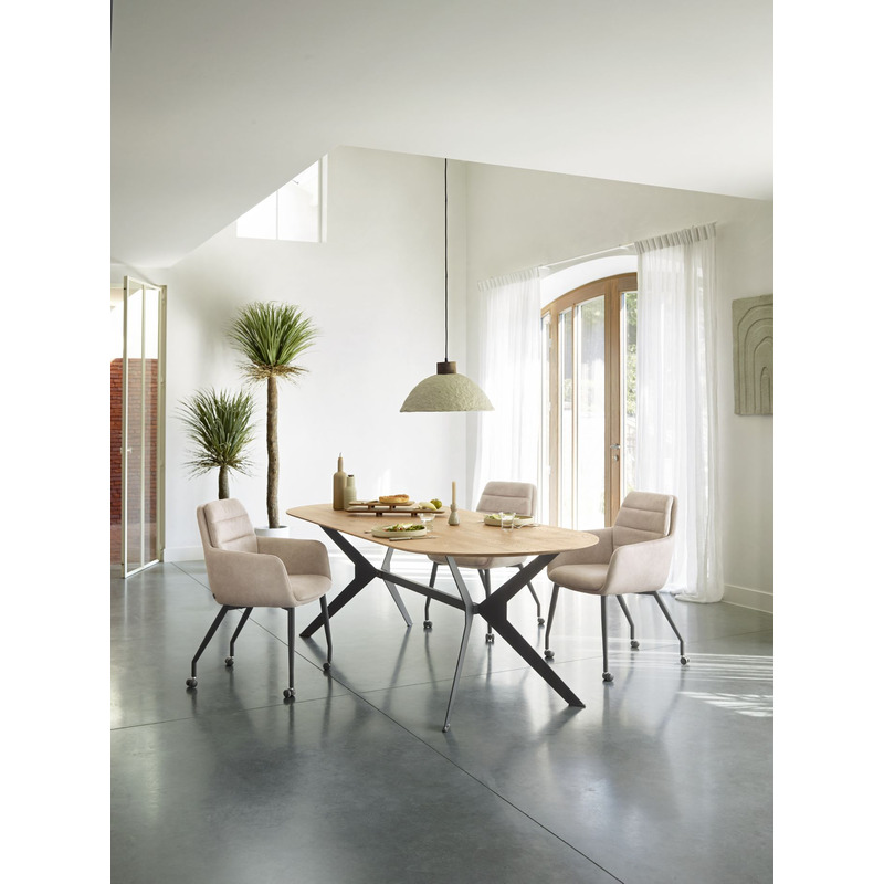 De armstoel Charda is uitgevoerd in de stof Zorro in de kleur sand. De rugleuning van de armstoel is voorzien van horizontale sierstiksels. De stoel heeft zwart metalen poten, wat zorgt voor een industriële look. Armstoel Charda wordt ongemonteerd geleverd, maar is met de bijgesloten handleiding zo gemonteerd of is het mogelijk om tegen een meerprijs de stoelen te laten monteren.