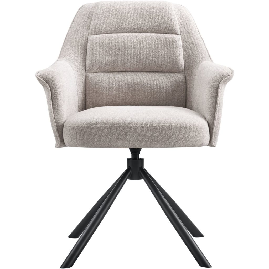 Deze comfortabele armstoel Masanto heeft een zitting die voorzien is van pocketvering. De rug heeft 3 banen, wat de stoel een speels effect geeft. Standaard is deze eetstoel voorzien van een zwarte metalen poot met terugdraai-mechanisme, ook wel auto-return functie genoemd. Hierdoor staat deze altijd netjes aan tafel en kun je gemakkelijk uit de armstoel stappen. Daarnaast is de rug voorzien van een handgreep, waardoor je deze stoel eenvoudig naar je toe kunt trekken.
