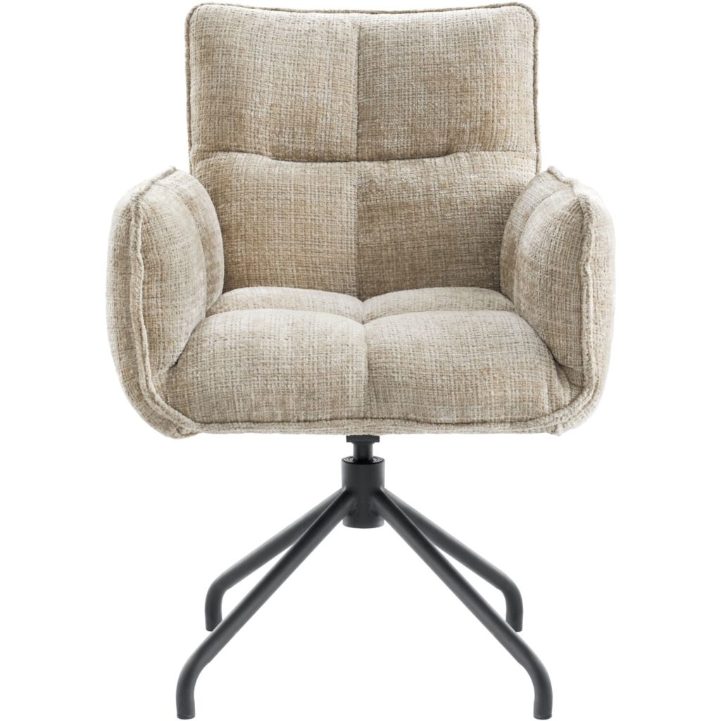 Onze armstoel Novira is voorzien van een extra dikke laag foam om een geweldig zitcomfort te waarborgen. De prachtige stof Cremona in de kleur 04-natural, maakt het plaatje helemaal compleet. Het 360 graden draaibare onderstel is uitgevoerd in zwart metaal.