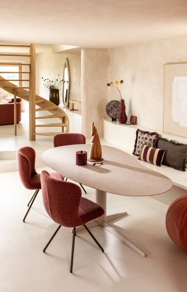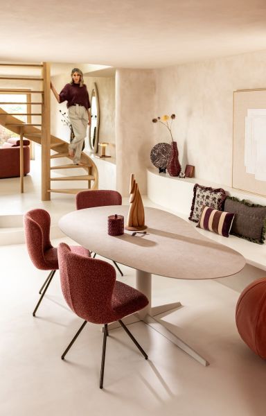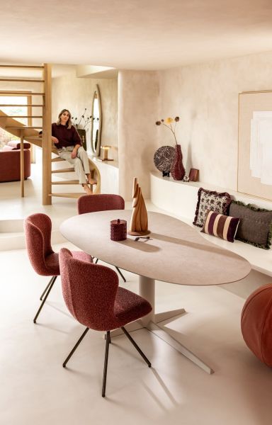 Met zijn zachte boucléstof Cloudy en afgeronde vormen is eetkamerstoel ETHAN een stijlvolle toevoeging aan je eetkamer. De warme koperkleur van deze uitvoering zorgt voor karakter, terwijl het steel brown frame een modern accent toevoegt. De stoel is 180 graden draaibaar en heeft een automatische terugdraaifunctie. Stoel ETHAN is ook verkrijgbaar in de kleuren beige en pink. Tip: mix en match alle drie de kleuren voor een trendy, levendige eethoek.