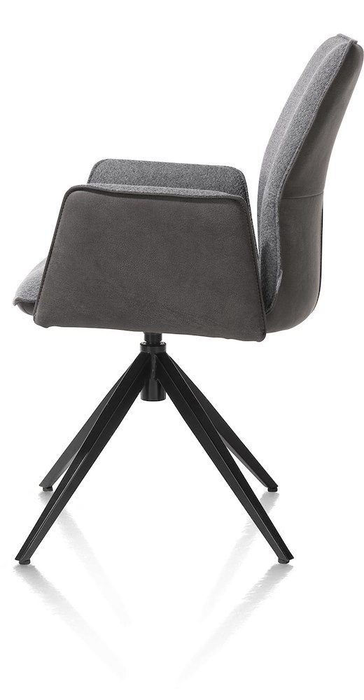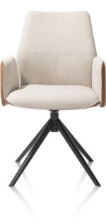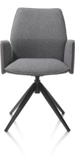 Ben je op zoek naar een stoere, draaibare armstoel? Maak kennis met FRANKY, een mooie armstoel uit onze selected choices collectie. Qua bekleding bieden we keuze uit een door ons geselecteerd aantal stoffen en kleuren in uni of duo; zo personaliseer je zelf jouw eigen FRANKY armstoel! FRANKY heeft een zwartmetalen 4-poot die 360 graden draaibaar is. De armstoel doet het goed in een industrieel interieur en geeft een stoere touch aan een Scandinavische woonstijl. De stoel is tevens verkrijgbaar zonder arm en naar wens shop je FRANKY ook met een vast frame.