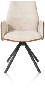 Zoek je een armstoel met een stoer en modern design? Wat dacht je van deze armstoel FRANKY uit de collectie van XOOON?! FRANKY is een pronkstukje dat geheel naar eigen wens te personaliseren is. Zo maak je zelf een keuze uit verschillende stoffen en kleuren in uni of duo. De armstoel heeft een zwartmetalen centrale 4-poot en komt qua looks mooi tot zijn recht in een stoer, industrieel interieur of in een Scandinavische woonstijl. FRANKY is ook verkrijgbaar met draaibaar frame en je shopt de stoel naar wens ook zonder arm.