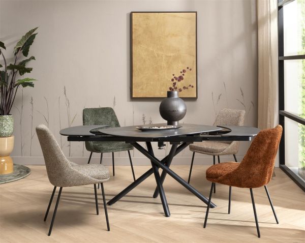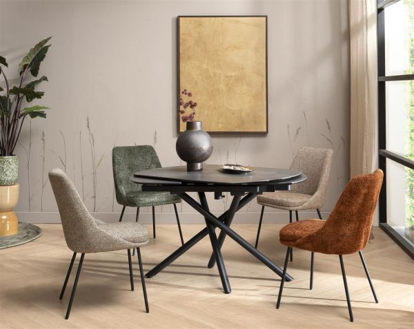 Isaac, eetkamerstoel – 4-pootjes – rough off black – stof Derby