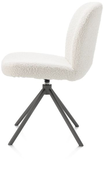 Ben je op zoek naar een moderne draaibare eetkamerstoel? Kijk dan eens naar deze aaibare eetkamerstoel JAXON van XOOON. JAXON is bekleed met de grove, heerlijk zachte bouclé stof Brioni. Naast deze ivoorkleurige uitvoering shop je deze wolk van een eetkamerstoel ook in de kleuren kiezel en lever. Mix en match de verschillende kleuren voor een speels effect aan je eettafel. JAXON is 180 graden draaibaar en heeft een terugdraaifunctie. Hij staat op een centrale 4-poot in de kleur grafiet. Naar wens is hij ook verkrijgbaar als armstoel.