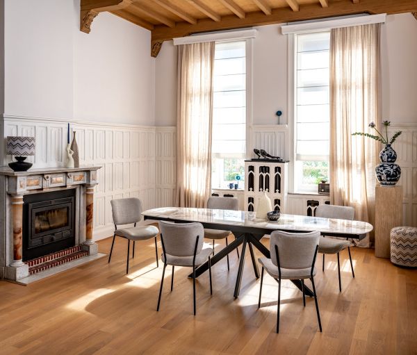 Julia, eetkamerstoel – 4-pootjes – rough off black – stof Vada