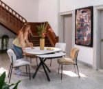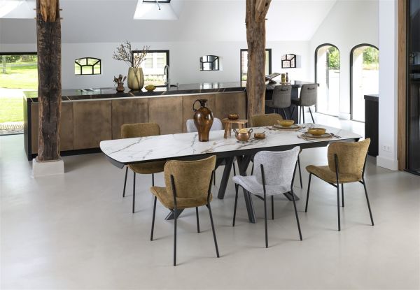 Julia, eetkamerstoel – rough off black frame – stof Lecce
