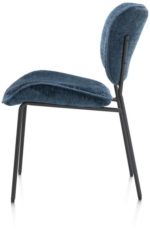 Deze stoel Julia heeft een simpel 4-pootsframe en een klassieke look. De smalle poten van deze collectie geven de stoel een erg fijne look. De stoel heeft een zithoogte van 52cm en de rughoogte is 86cm hoog. Stoel Julia is standaard uitgevoerd in de erg zachte, platgeweven chenillestof Lecce en is uitvoerbaar in 5 verschillende kleuren: blauw, crème, groen, oker en perzikkleurig. Dit is de versie in het blauw.