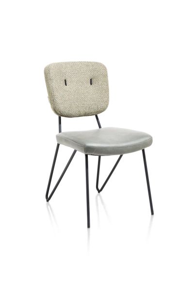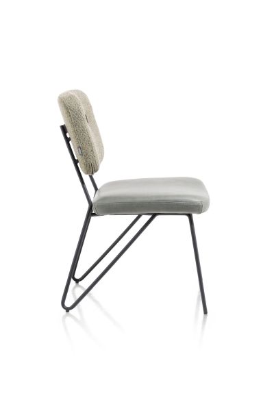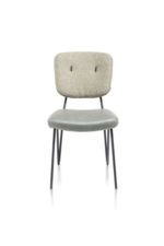 Eetkamerstoel JUNE in de kleur groen is met haar bijzondere zwart metalen onderstel niet alleen een plaatje om te zien; de comfortabele pocketvering zorgt ervoor dat JUNE ook heerlijk zit! Qua bekleding stel je de rug en zit zelf samen, bijvoorbeeld in deze combi van stof Pala (zit) en stof Cleo (rug) die ook in taupe en lichtgrijs beschikbaar is. Wist je dat JUNE ook verkrijgbaar is met armleuningen?