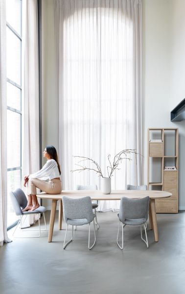 Een musthave van een stoel, dat is deze Scandinavische eetkamerstoel KODI in de kleur kiezel. De stoel heeft een minimalistische look met een heerlijk zitcomfort dankzij de goede curve in de rug en de zachte stof BRIONI. KODI heeft een rank onderstel en een frame in de kleur nebbia. Hij is in meerdere uitvoeringen verkrijgbaar. Kies jij voor één soort of ga je voor verschillende KODI’S rondom je eetkamertafel?
