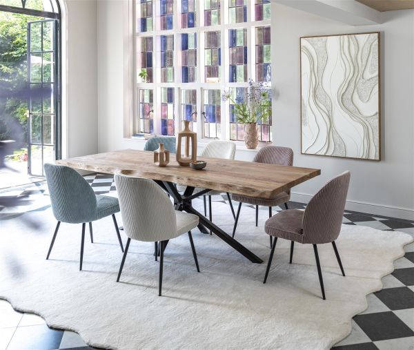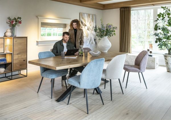Deze stoel Leonidas heeft een simpel design met een brede rug, maar de grootste aandachtstrekker aan deze stoel is zonder twijfel de ultrazachte veloursstof Rivas waarmee de stoel bekleed is. Deze ribstof voelt heel zacht en aaibaar aan, daarom is deze stof een genot om op te zitten! Deze versie is uitgevoerd in de kleur Charcoal, maar er zijn ook nog 3 andere kleuren verkrijgbaar!