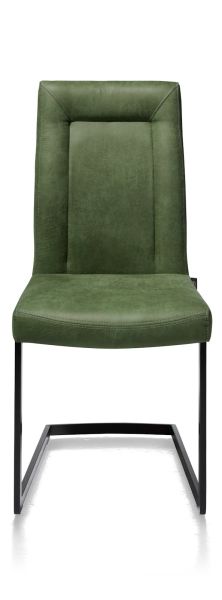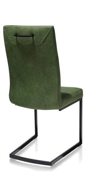 Deze moderne Malene eetkamerstoel heeft een design met strakke lijnen. Dit zie je terug in het zwart metalen swingframe en de greep op de rugleuning. De stoel zelf is ook strak vormgegeven en heeft een heerlijk zitcomfort. Deze versie van eetkamerstoel Malene is bekleed met de stof Secillia in een warmgroene kleur.