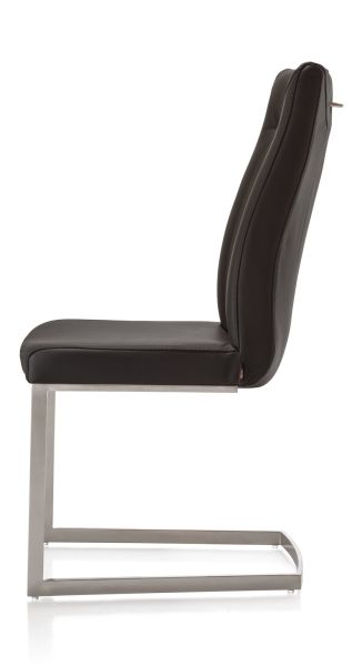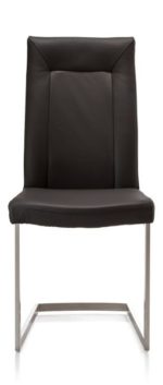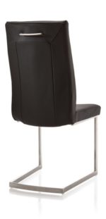 Deze in met zwart leer gestoffeerde eetkamerstoel Malvino is de broer van de stoffen variant Malene. De stoel heeft een eigentijds rvs vierkant swingframe. Handig is de ronde handgreep op de rugleuning, ideaal om de bekleding te beschermen tegen vieze vingers en slijtage. De eetkamerstoel in deze uitvoering is op voorraad en daardoor snel leverbaar.
