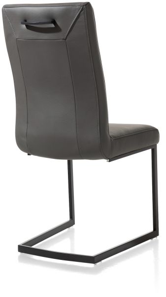 Deze moderne eetkamerstoel Malvino van Henders & Hazel is voorzien van een praktische handgreep op de rugleuning. De rechte handgreep past goed bij het strakke design van het vierkante zwarte swingframe van de stoel. Malvino kan worden bekleed met verschillende soorten en kleuren leer. De handgreep beschermt het leer tegen slijtage en vieze vlekken.
