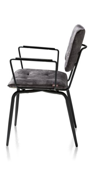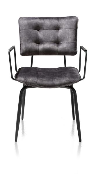Deze armstoel Manou heeft een trendy en toch tijdloos design. De stoel komt binnen verschillende woonstijlen goed tot zijn recht. Hij is bekleed met de stof Karese in de kleur antraciet. Een mooie match met het off black metalen onderstel. Opvallend zijn de gecapitonneerde zitting en rugleuning, deze geven de stoel net wat meer allure. De armstoel is in verschillende kleuren leverbaar.