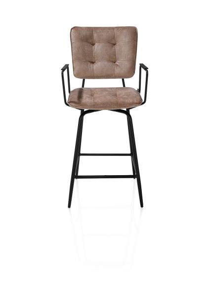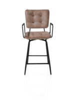 Barstoel Manou met armleuningen is de perfecte combinatie van stijl en comfort. De zitting en rugleuning zijn afgewerkt met een klassiek gecapitonneerd patroon dat de stoel een luxe uitstraling geeft. De bekleding in de camelkleurige microvezelstof Karese voelt zacht aan en heeft de rijke uitstraling van velvet. Tegelijk is deze stof sterk en goed bestand tegen dagelijks gebruik.De armleuningen zorgen voor extra steun en comfort, terwijl het metalen frame in off black de warme camel kleur mooi laat uitkomen. Deze barstoel is verkrijgbaar in meerdere kleuren en ook zonder armleuningen. Zo kies je precies wat past bij jouw interieur en indeling.