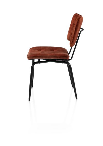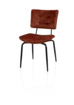 Eetkamerstoel Manou brengt klassiek design en moderne flair samen in één elegant geheel. De gecapitonneerde rugleuning en zitting geven de stoel een verfijnde uitstraling. Het frame loopt stijlvol door aan de achterzijde en vormt tegelijk een praktische greep, zodat je de stoel makkelijk kunt verplaatsen zonder de bekleding aan te raken. Manou is beschikbaar in diverse kleuren. Deze variant is uitgevoerd in de stof Karese, in de warme tint koper.